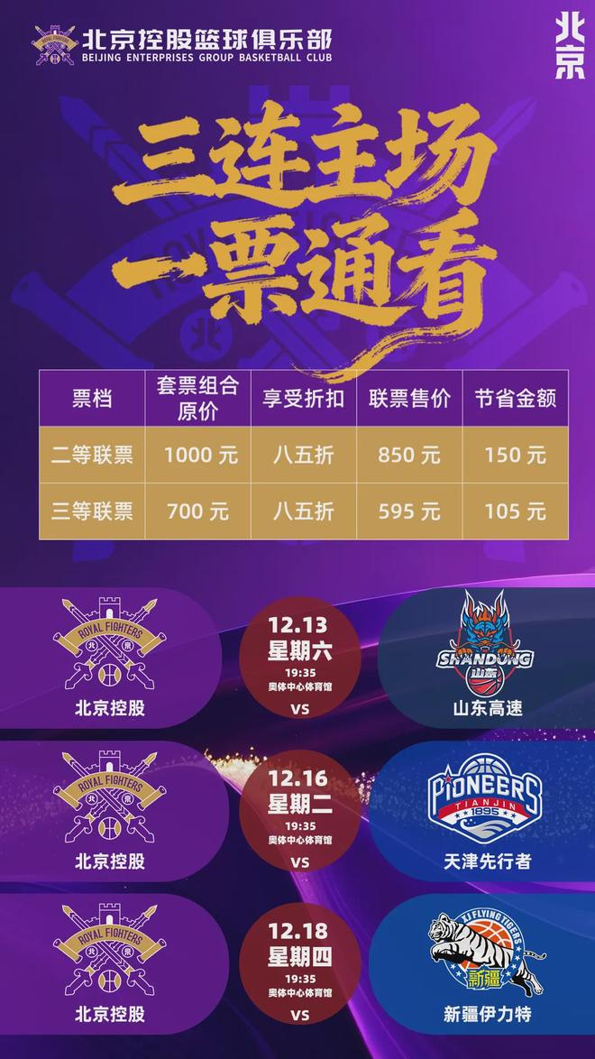 特别注意:三联主场通票需在北京控股vs山东高速的售票界面中购买